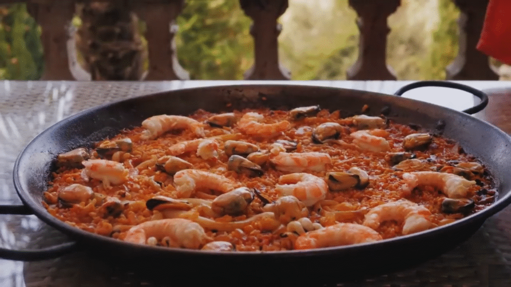 One of Spain’s most famous dishes originates from Valencia.  Mediterranean culture celebrates fresh vegetables, seafood, and olive oil which are infused into saffron rice to create Paella. It comprises short- or medium-grain rice (Bomba or Calasparra). Paella base consisting of green/red peppers, onions, garlic, olive oil, tomatoes as well as a stock. Saffron is essential due to enhancing the aroma and color while smoked sweet Spanish paprika with rosemary add to it deep flavors. There are several variants with some containing rabbit, chicken, and snails while others take seafood and add prawns, mussels clam and squid. One distinct feature of making paellas is not stirring the rest of the rice after adding it for a crunchy burnt layer called socarrat at the bottom.