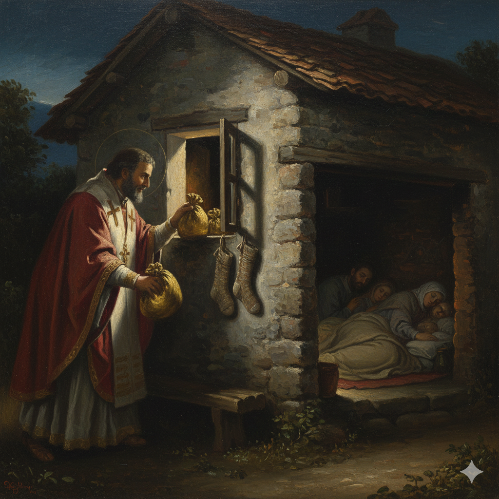 His most famous act of grace—secretly tossing bags of gold through a window to save three daughters from a life of destitution—established the spiritual DNA of Christmas: the idea that the greatest gifts are those given in secret, expecting nothing in return. This act didn’t just provide a dowry; it provided a template for the “anonymous miracle.” When those bags of gold reportedly landed in stockings drying by the fire, the chimney and the mantle became forever hallowed ground.