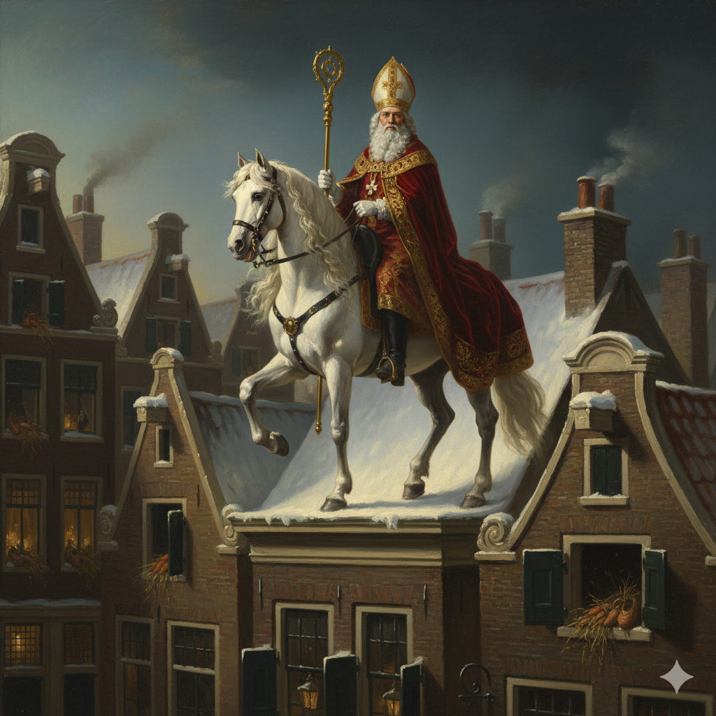 - The Shoes by the Chimney: Children left wooden shoes (klompen) by the chimney, filled with hay or carrots for the horse, hoping for treats in return.