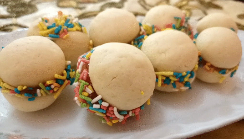 Lancashire cookies are delicious, buttery cookies that are simultaneously sweetened, resulting in the most delightful melt-in-your-mouth experience. They transform every bite into pure bliss. Unsweetened sprinkles covering the sides of these gorgeous, bite-sized sandwich cookies are optional but immensely tempting. My mom and I used to bake Lancashire cookies when I was a school kid. I recall feeling warm and pleased while my mom and I rolled the cookies in the kitchen because the entire house smelled so sweet.