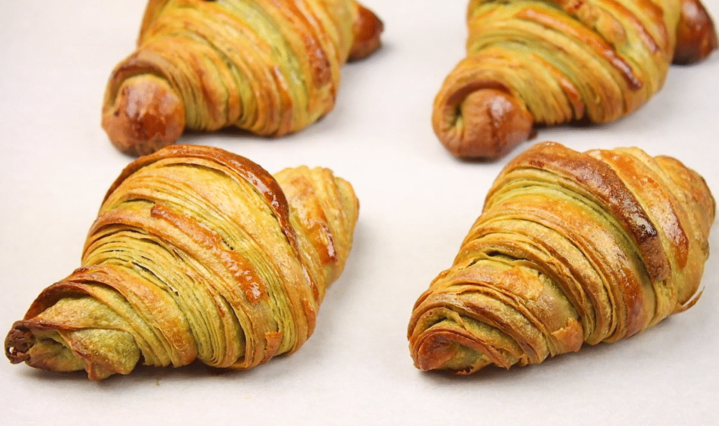 The croissant is one of the most popular types of baked pastry worldwide. And there are reasons for that. Nothing compares to the smell and taste of a freshly made croissant… the aroma alone is something else. And then, experiencing that first bite from the crisp, flaky exterior that contains soft, buttery, airy insides! Pairing matcha with croissants came to my mind right away. The matcha croissant marries the Japanese silky, umami flavor of matcha green tea powder with a French flaky, buttery pastry. When done right, these matcha croissants can be a scrumptious delight to treat your friends and family. A lot of work is involved, and croissants require time, meticulous hands, and a gentle touch. Every baker knows the cold December air makes the process easier and faster. The only downside? These matcha croissants are so addictive that you might have to stop bingeing on them all at once!