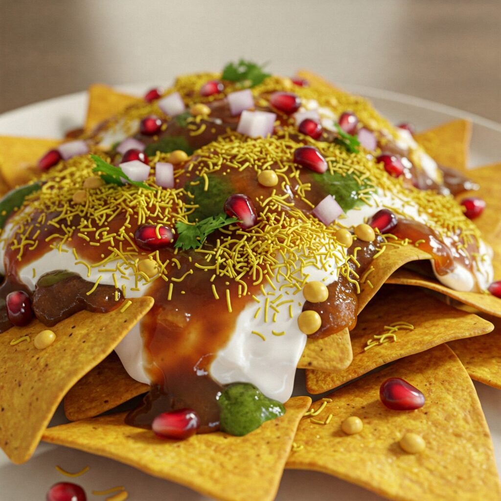 Chaat Nachos are great for all types of parties or when you get that sudden urge to snack. Any person will be left wanting more after they try these crispy nachos topped with chickpeas and potatoes, seasoned with delicious sauces and yogurt. These Indian nachos are all vegetarian, which makes them a part of the amazing fusion cuisine.