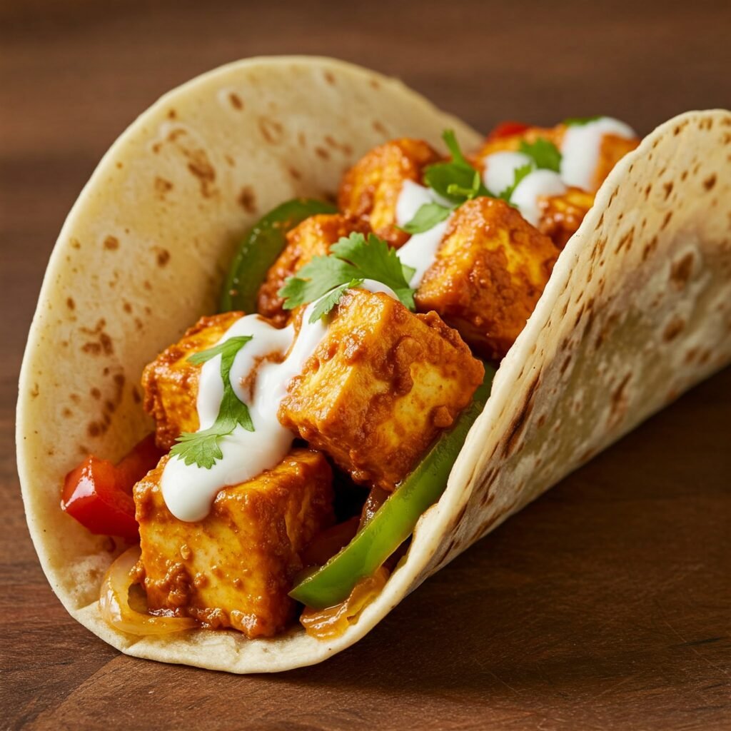 Soft tortilla wraps filled with grilled and marinated paneer cubes are richly spiced and then embellished with generous amounts of salsa and yogurt. The taste of these Paneer Tikka Tacos is amazing, with a Mexican twist, and definitely a winner in perfect Indian smoked dishes.