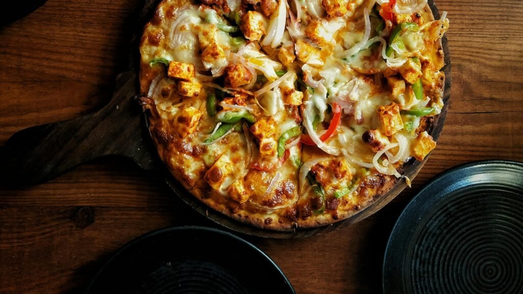 Marinated tandoori paneer served with spicy, tangy, crunchy veg, a generous amount of cheese, and mint yogurt sauce. Who doesn’t enjoy tandoori paneer!? It’s scrumptious and multi-dimensional.