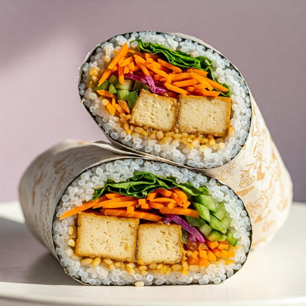 Here is a Burrito with a mouth-watering infusion of Japanese Sushi. The filling consists of fried Tofu, seasoned rice, cucumber, and carrots, along with avocado, all tightly rolled in a Tortilla or Gigantic Nori Seaweed. This is a popular fusion dish since it’s incredibly convenient to eat when on the go, combining the best of both worlds in a single bite.
