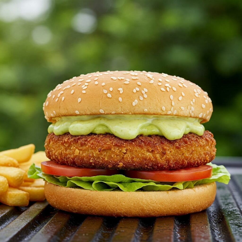 Vegan Katsu Burgers Grilled, Accompanied by Wasabi Mayo