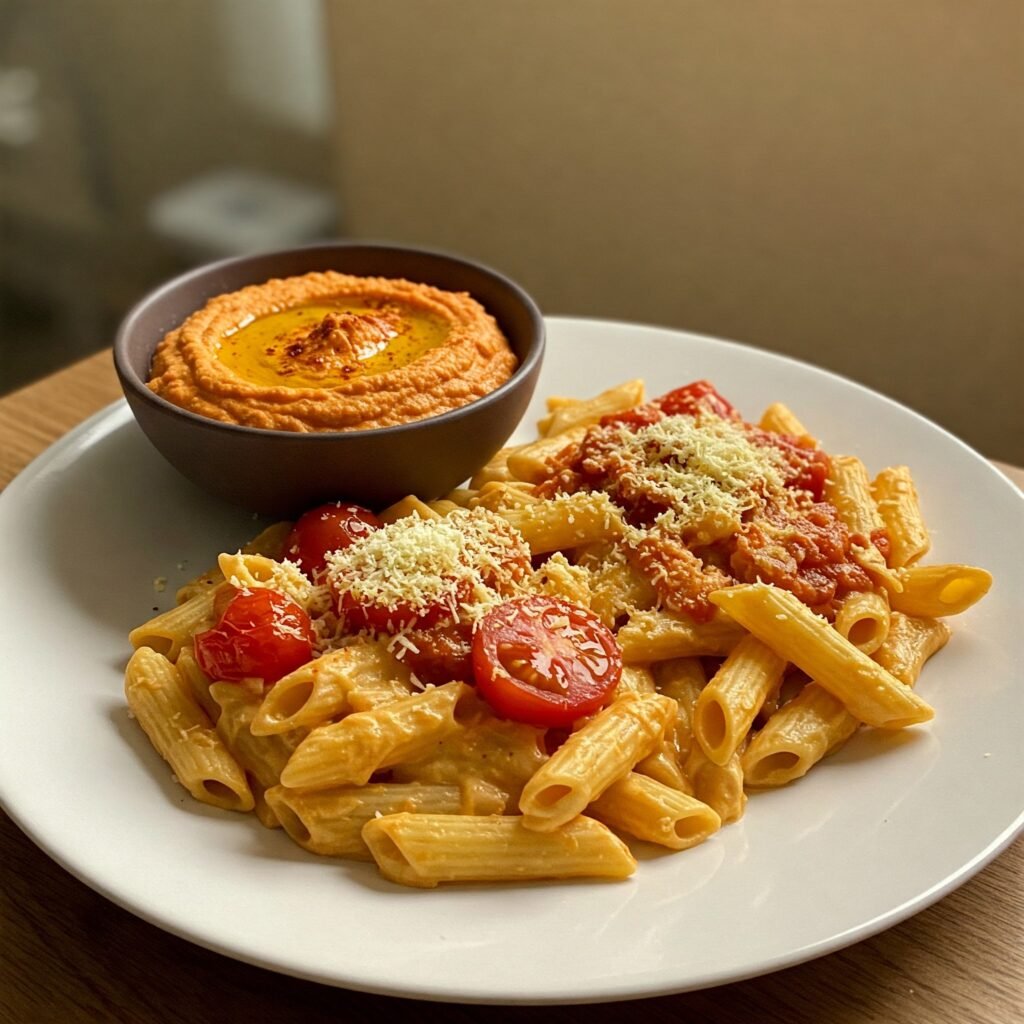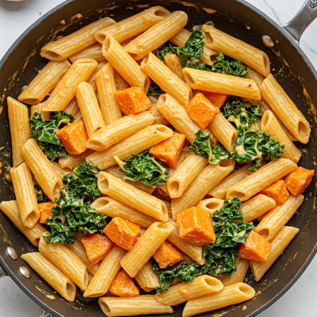 With Vegan Cajun Coconut Sweet Potato Rigatoni and Kale